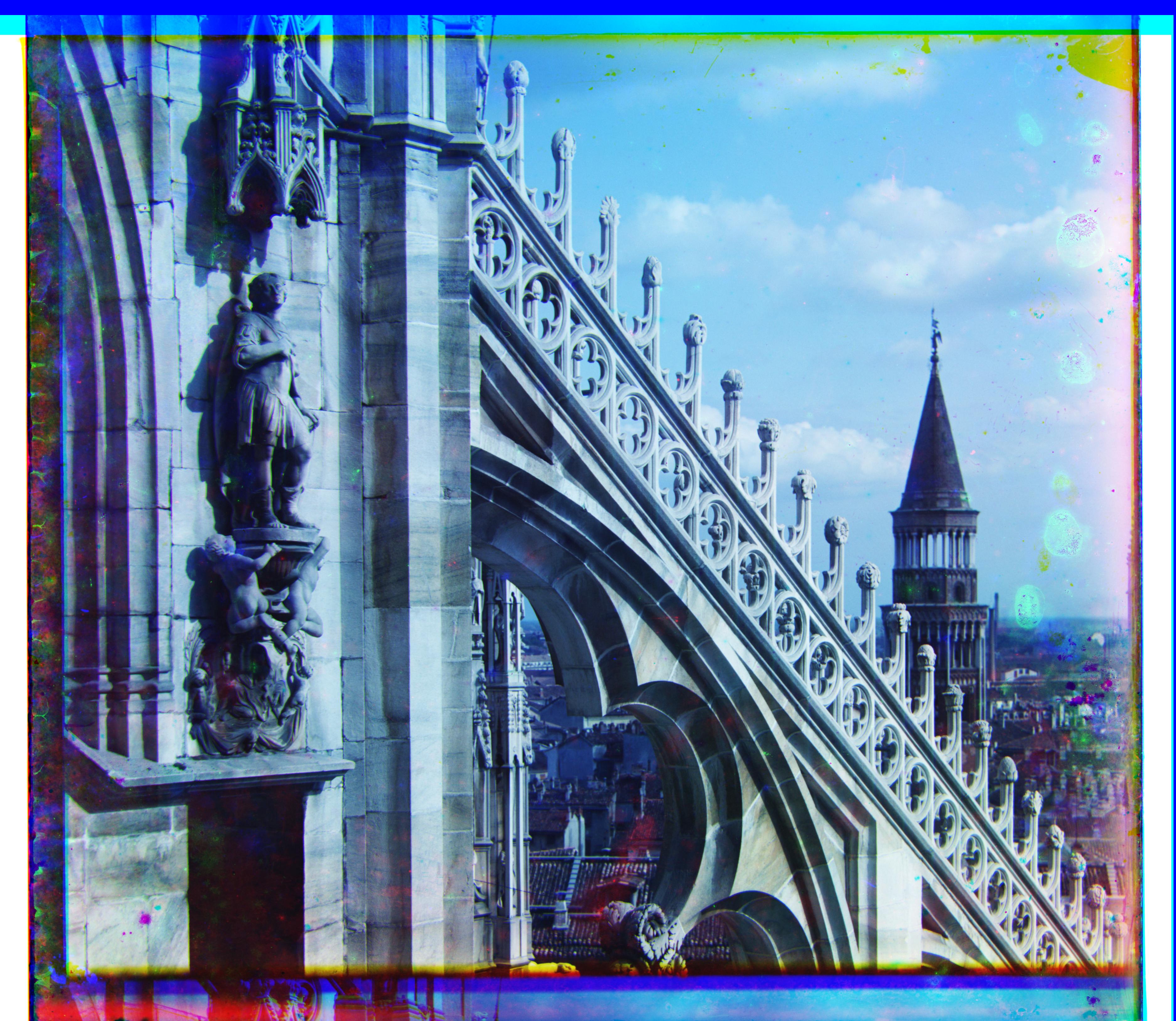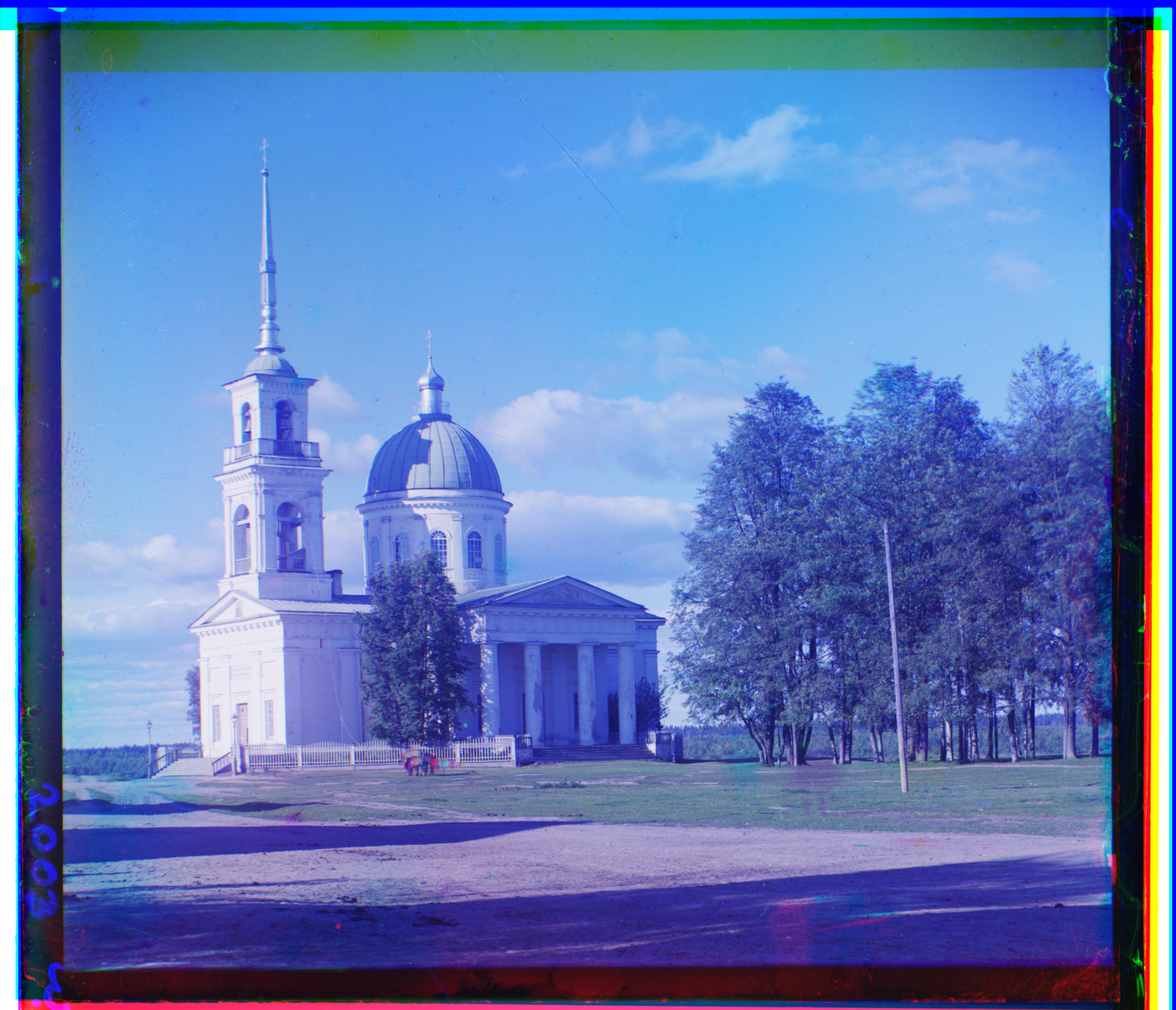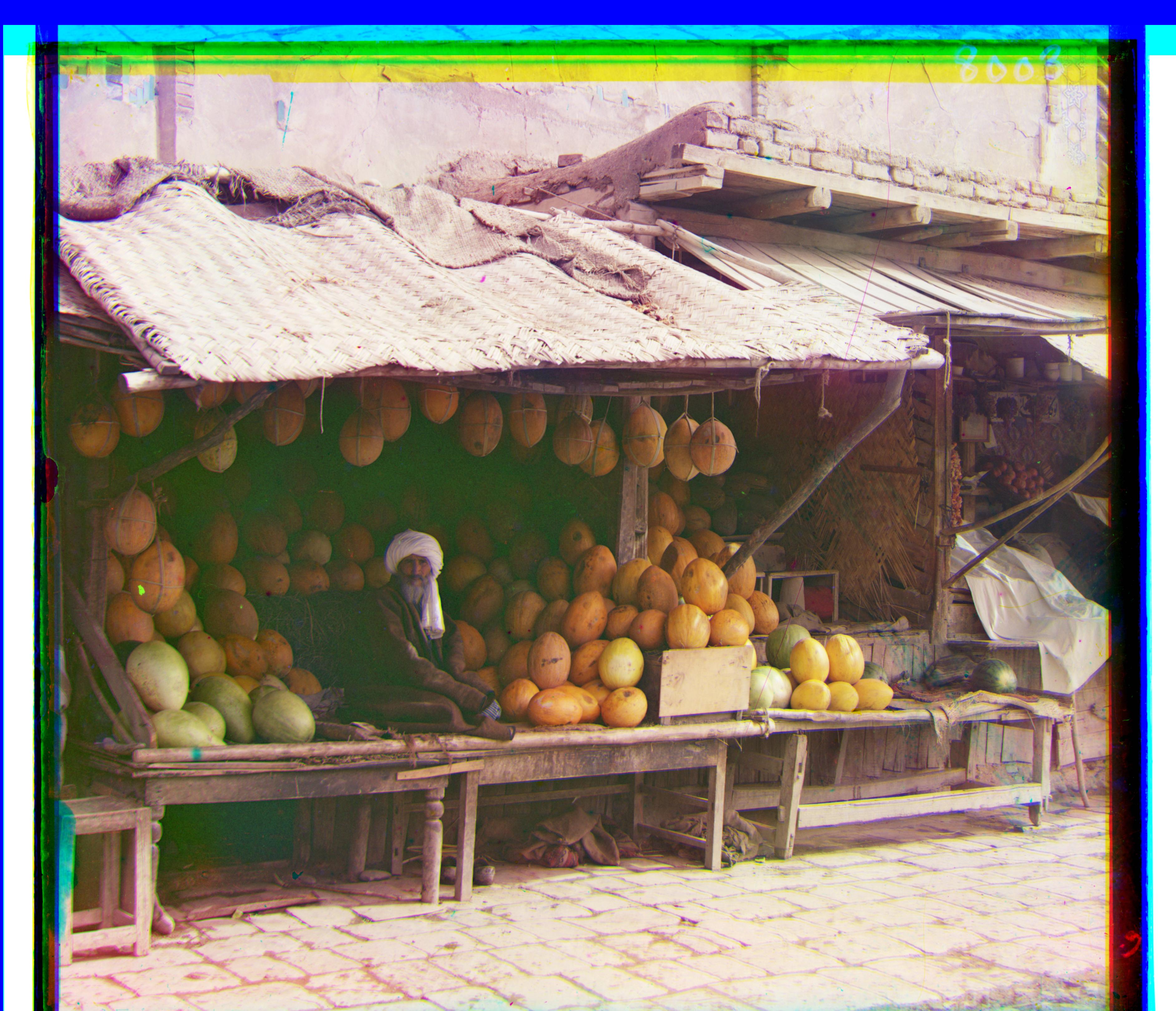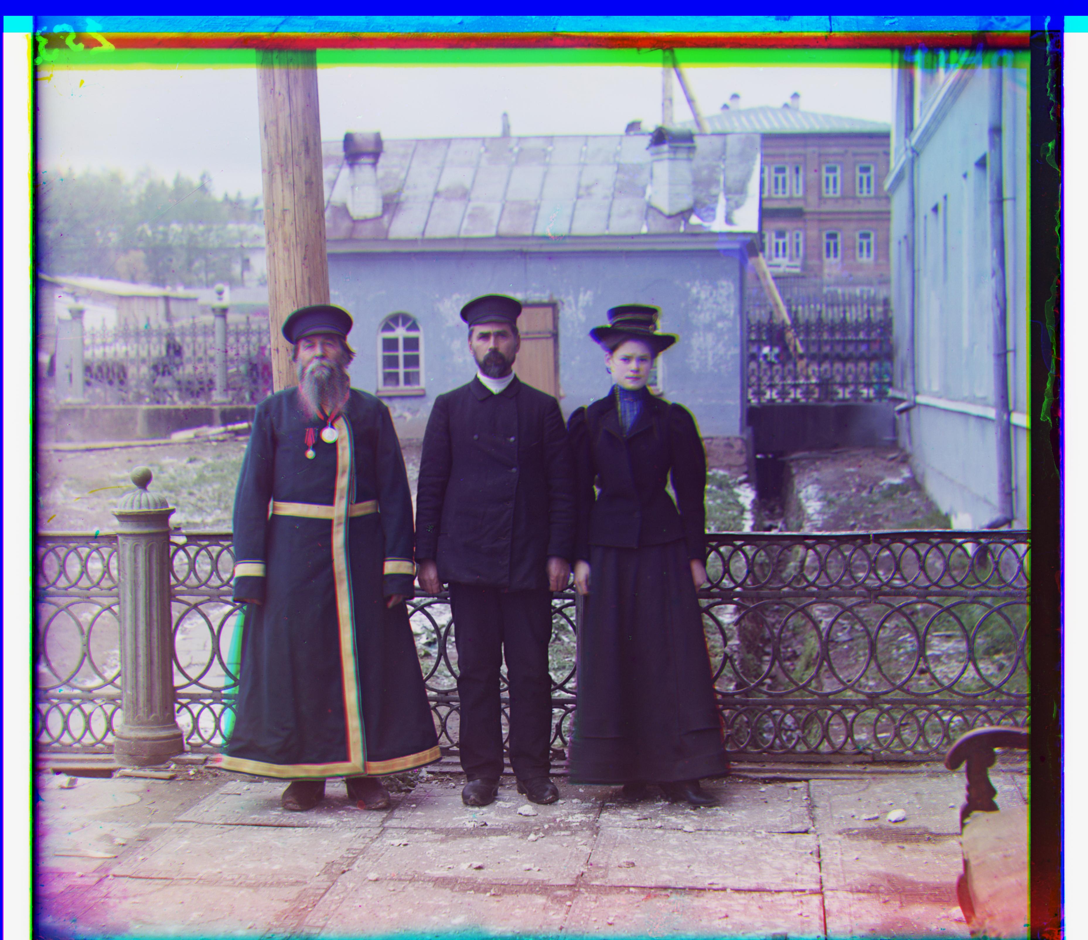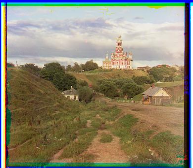 Sergei Mikhailovich Prokudin-Gorskii pioneered early color photography by capturing three sequential exposures of the same scene through blue, green, and red filters on a single glass plate. Decades later, the Library of Congress digitized these B-G-R plates, revealing remarkable views of the late Russian Empire but also exposing practical issues: the three channel images are vertically stacked, often misaligned, and can differ in intensity or contrast. Reconstructing a faithful color photo therefore requires separating the plate into its three grayscale channels and precisely aligning the green and red images to the blue reference using a translation model.