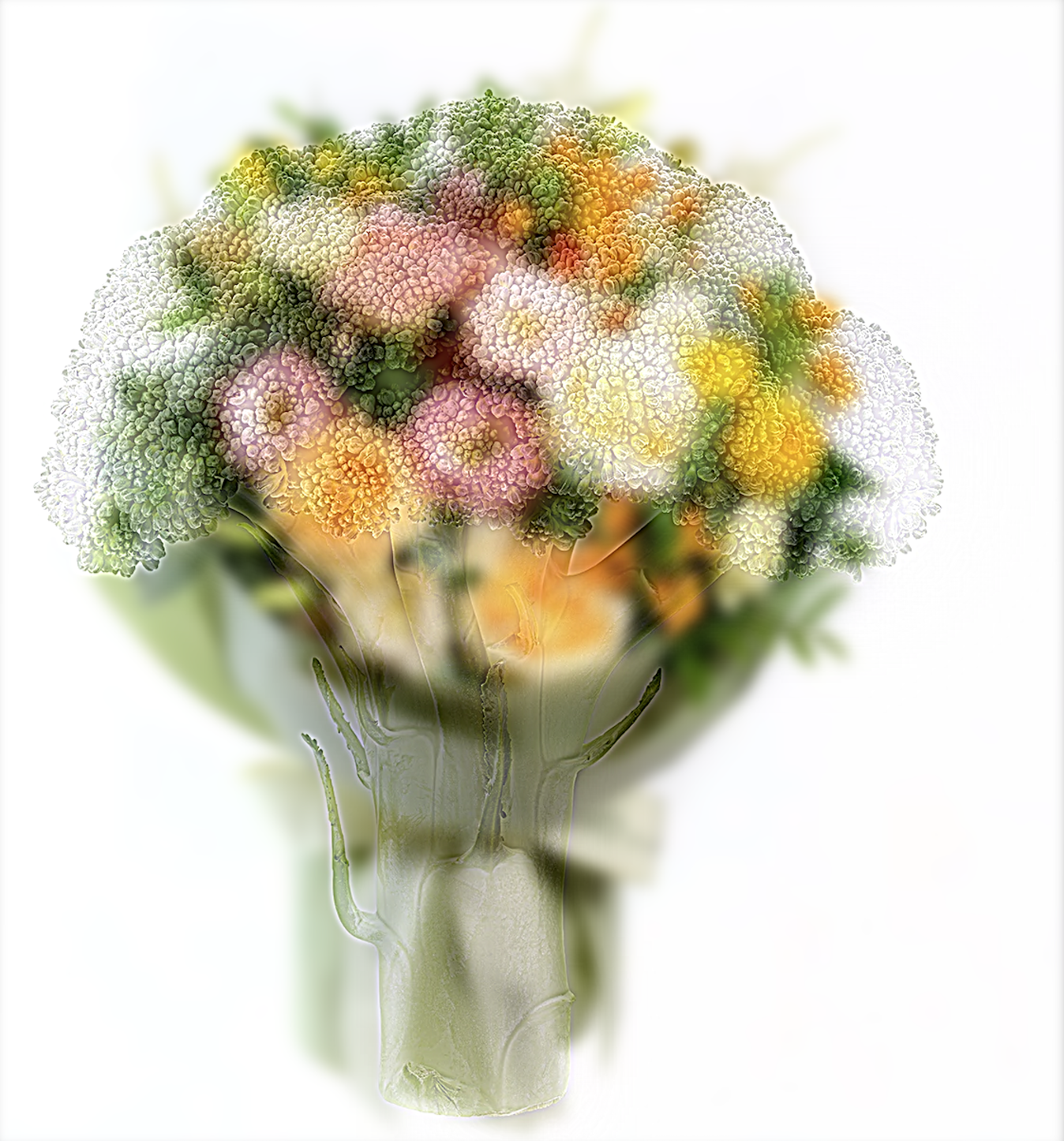 ) to ensure corresponding semantic parts overlay well, then separating frequencies and recombining. The low-frequency layer comes from a Gaussian blur of the first image . The high-frequency layer comes from a high-pass of the second image , which is equivalent to convolving with the impulse minus Gaussian kernel . I then form the hybrid image by adding the components (optionally scaling highs) , with α tuned visually. I expose , , and as parameters and empirically choose cutoffs so that nearby viewing favors ’s details while distant viewing preserves ’s structure. For my favorite result (floccoli), I also include frequency analysis panels by plotting the log-magnitude Fourier spectra of each stage for the two inputs, the filtered images (LP, HP), and the final hybrid, clearly showing low pass energy near the origin and high pass energy in the periphery.